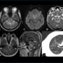 Image C & D – The trace and ADC images of Diffusion weighted imaging shows patchy areas of restricted diffusion.